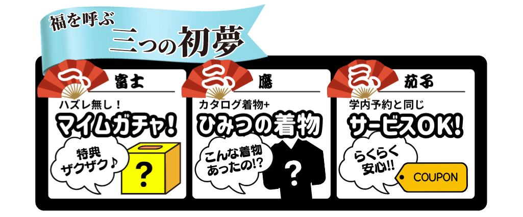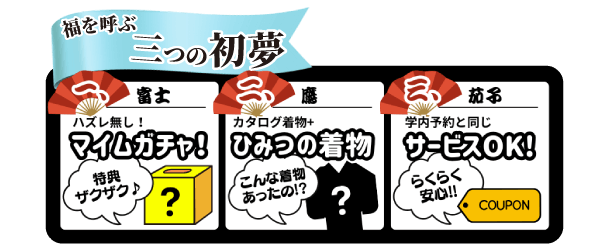 ※カタログに掲載されている着物・袴の一部は予約が集中しているため、ご利用日によってはお貸出し出来ない場合がございます。